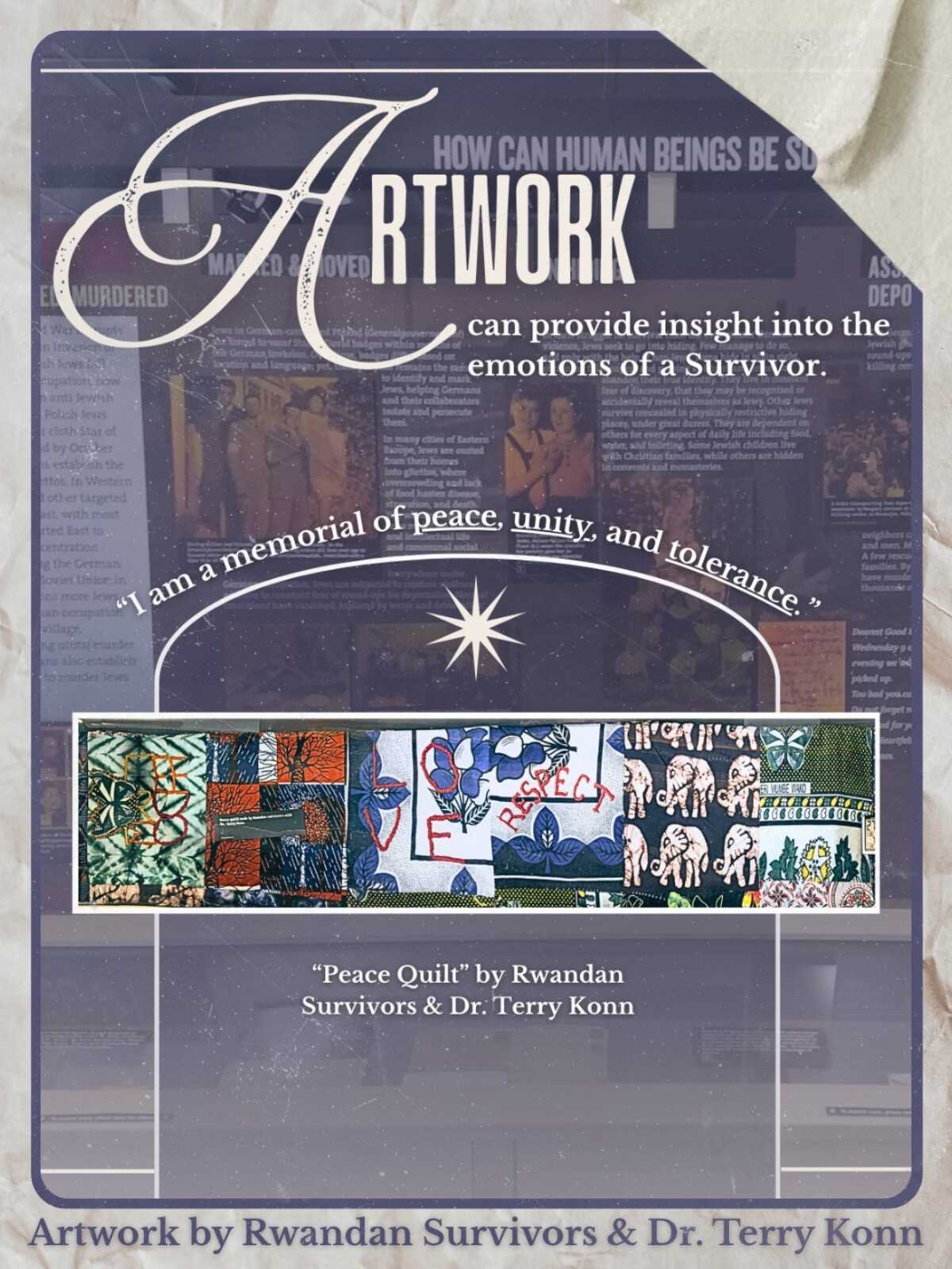 The stories of genocide Survivors are preserved through these artifacts only if you are willing to listen and learn. Click here to visit our Exhibit, where you can learn more about this art piece and the story behind it.