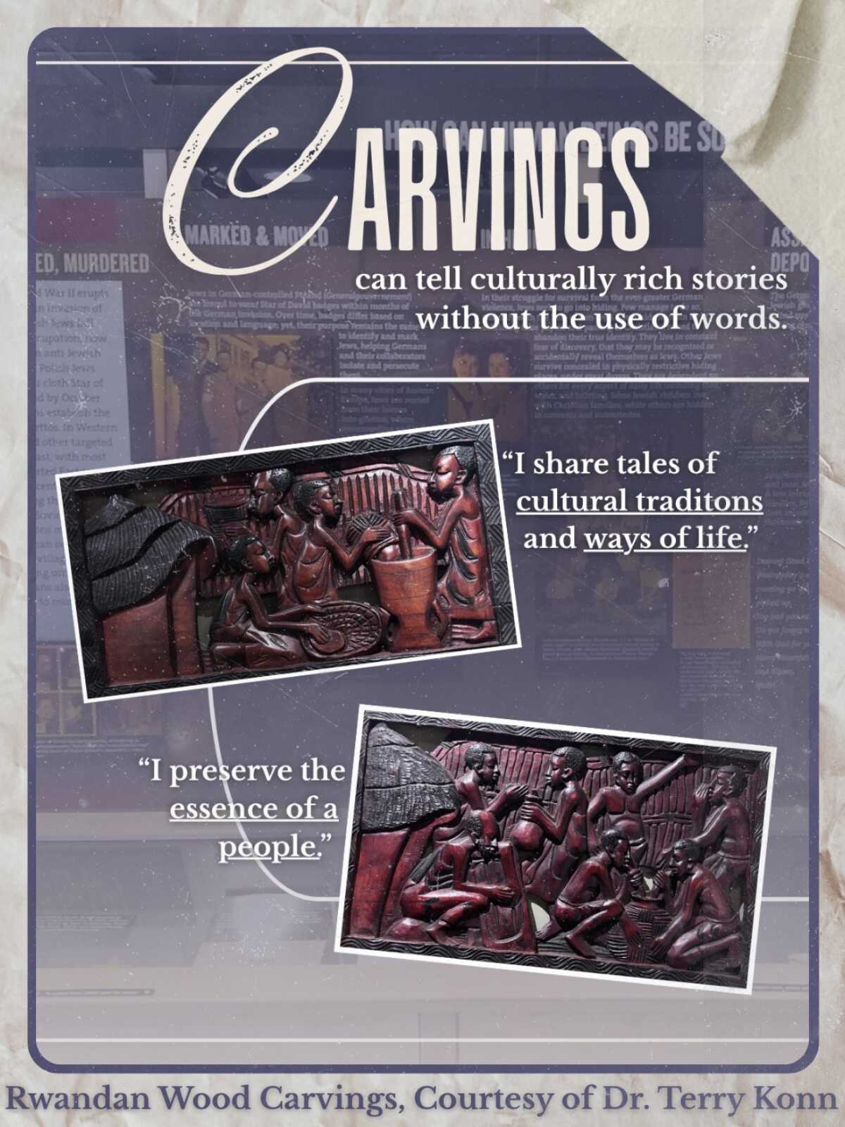The stories of genocide Survivors are preserved through these artifacts only if you are willing to listen and learn. Click here to visit our Exhibit, where you can learn more about this carving and the history behind it.