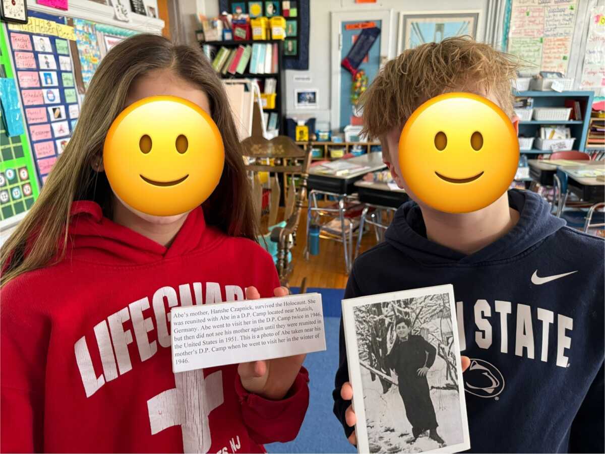 Fifth-grade students from McKinley Elementary School, Westfield, NJ, recently delved into the lives of Holocaust Survivors when they explored three of our Survivor Suitcases in their classroom. These suitcases contain scrapbooks documenting a Survivor's life, a set of pictures, a set of (accompanying) captions, and suggested exercises using all three in order to make history come to life.
